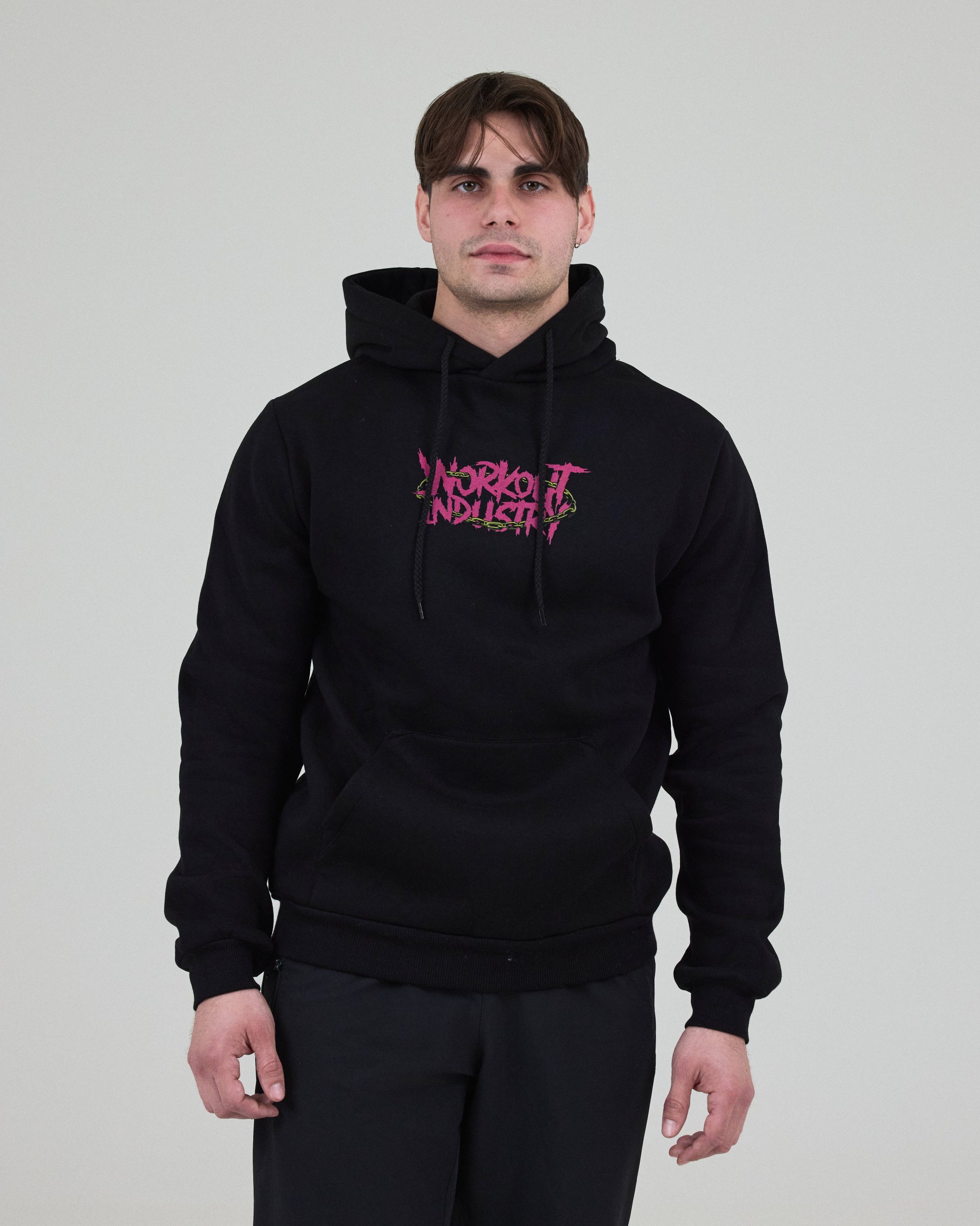 Μαύρη unisex μπλούζα M/M με κουκούλα, τύπωμα πίσω και μπροστινή τσέπη.